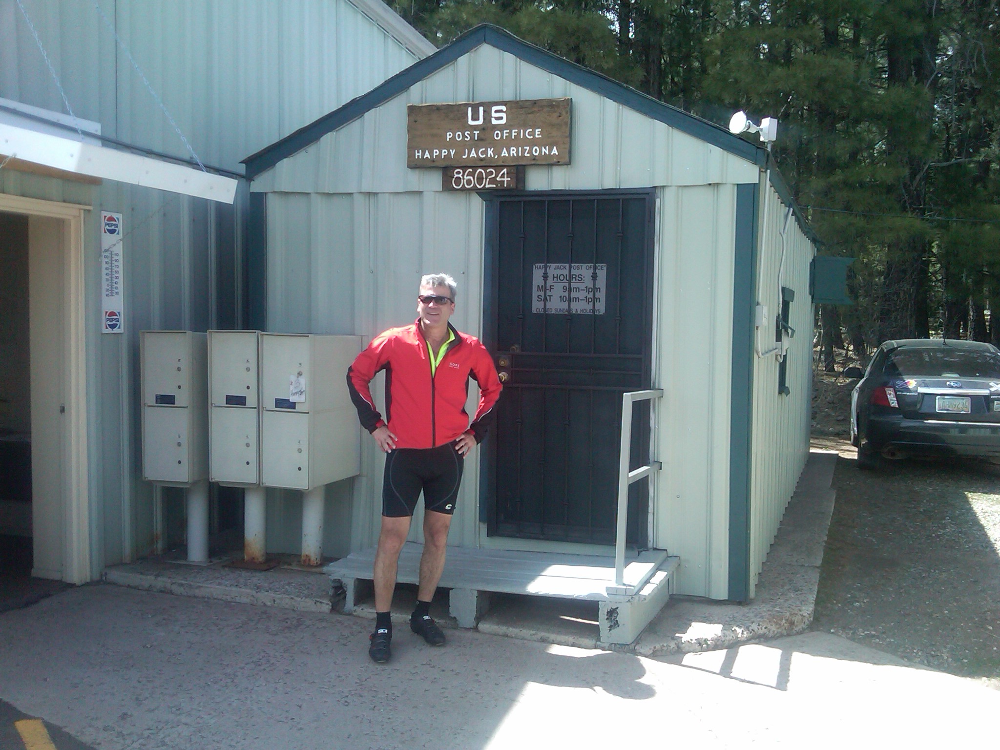 We climbed to elevation 7450 ft today and spent our lunch eating at the Lone Valley Cafe in Happy Jack. We met a number of really nice people at the Cafe. Most were interested in what we were doing and some gave us some information about our route ahead and what to expect in Winslow – “wear plenty of sunscreen because there are no trees.”