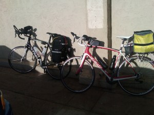We left Winslow at 7:30 am hoping for a strong tailwind. Unfortunately, the winds were coming almost directly from the south, gusting over 30 mph.  We had a very difficult time keeping ourselves upright for the first hour and progress was very slow. Midmorning, the winds shifted to a WSW direction and we were off to the races.