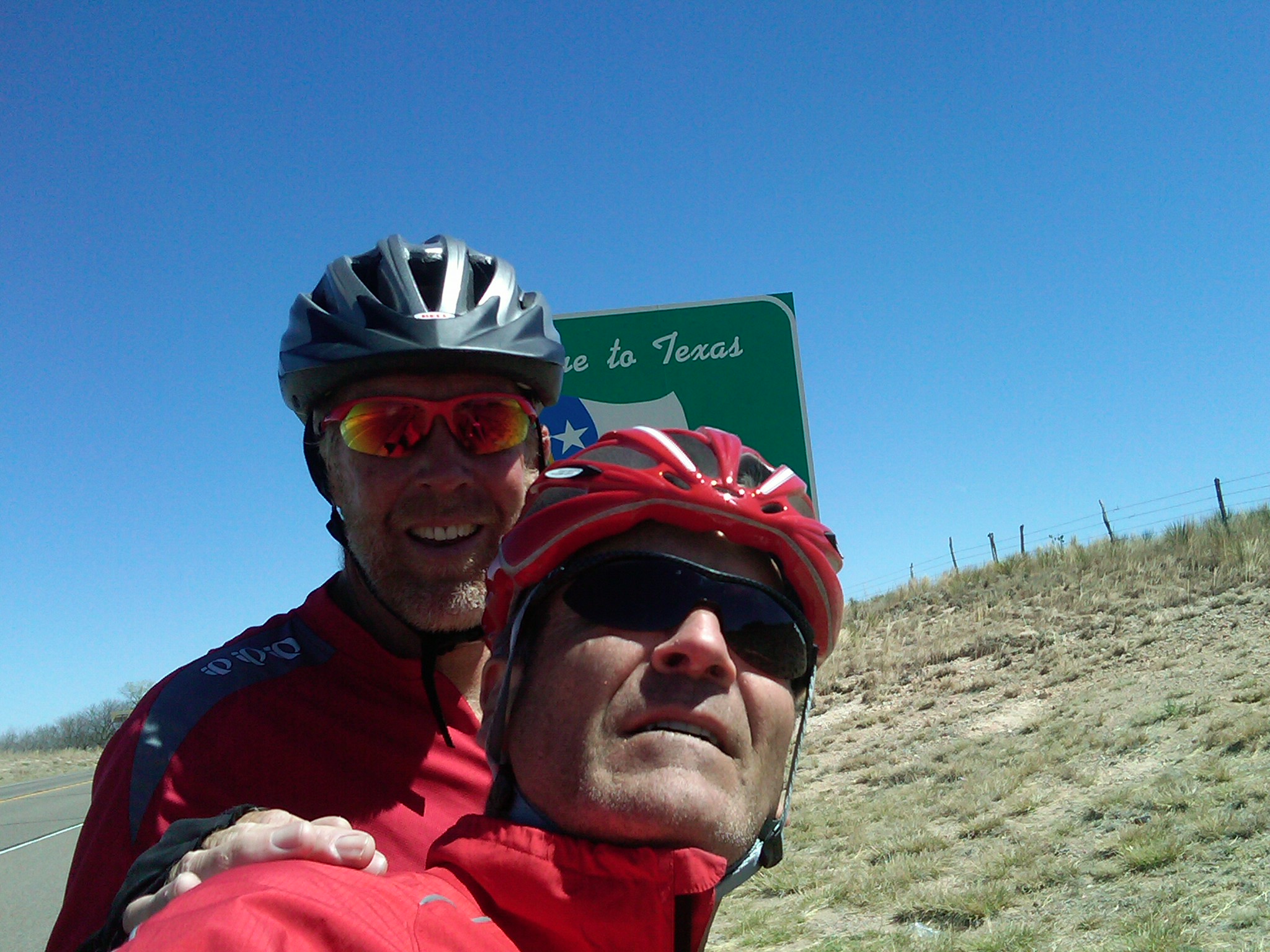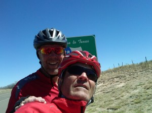 Wow, you guys are cranking. Keep it up! (But don’t forget to look around!) I also crossed into Texas today, well south (and west) of you. That tailwind was great! WAY better than the day before, fighting 50 mph winds and blowing clouds of dust! -Alex